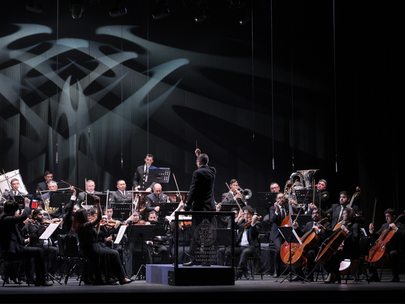 Un emotivo concierto que transitó por la música clásica y popular brindaron la Orquesta de Cámara de la PUCV y la Banda de Conciertos de la Armada en el Teatro Municipal de Viña del Mar, espectáculo en homenaje a las Glorias Navales organizado por nuestra casa de estudios que, de acuerdo a lo planteado en su Plan de Desarrollo Estratégico Institucional 2023-2029, reconoce a la cultura y las artes como un espacio vital de encuentro con la sociedad, promoviendo instancias de diálogo que fortalecen nuestra identidad, favorecen la inclusión y transforman la vida de las personas.