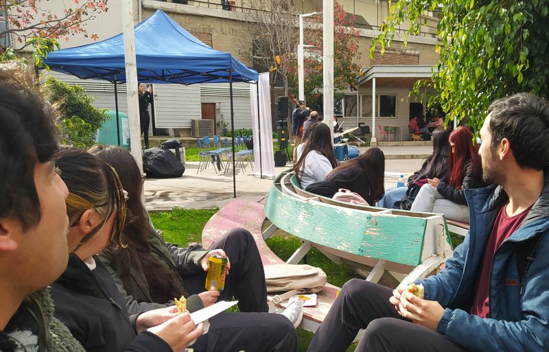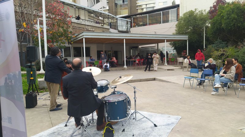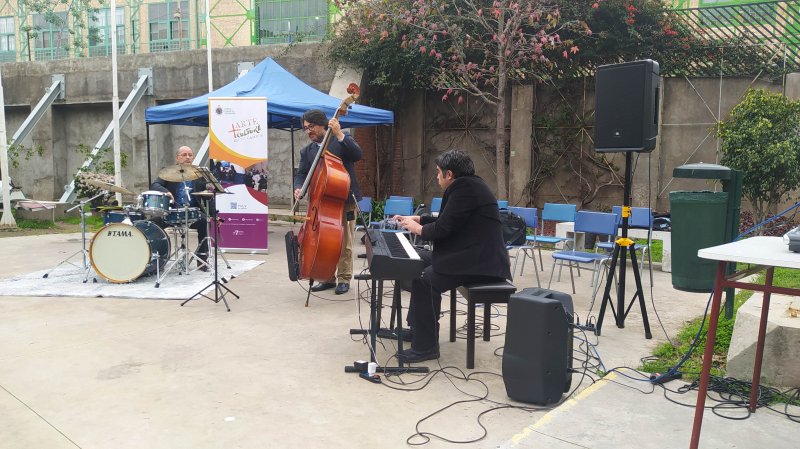 El conjunto Aconcagua Jazz Trío se presentó en el patio del Edificio Gimpert en el cierre de la temporada del primer semestre del programa “Más arte, más cultura en tu campus”, organizado por la Dirección Artístico Cultural y la Dirección de Asuntos Estudiantiles de la Pontificia Universidad Católica de Valparaíso.