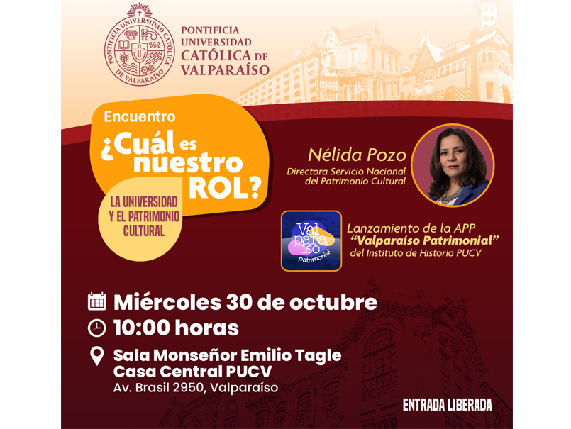 El miércoles 30 de octubre, a partir de las 10 horas en la Sala Alberto Cruz de Casa Central de (Avenida Brasil 2950, Valparaíso), se realizará el encuentro “¿Cuál es nuestro rol? La Universidad y el patrimonio cultural”.
