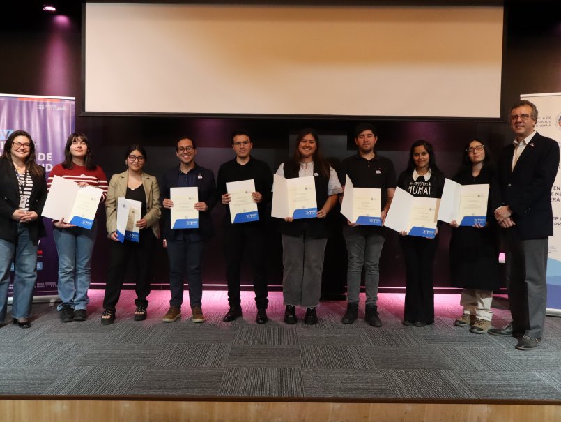 Junto a los participantes de la Escuela de Educación Financiera, también se entregó un reconocimiento a los monitores y monitoras de la Escuela de Negocios y Economía y al profesor Antonio Poblete, quienes encabezaron esta iniciativa en coordinación con el INJUV.