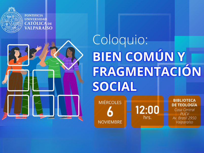 El día miércoles 6 de noviembre, a las 12 horas, se realizará el coloquio "Bien común y fragmentación social", organizado por la Cátedra de Doctrina Social de la Iglesia, actividad que se llevará a cabo en la Biblioteca de Teología de Casa Central.