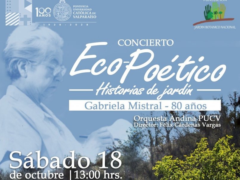 La música estará a cargo de la Orquesta Andina PUCV, dirigida por Félix Cárdenas, que brindará un concierto en un escenario privilegiado para reencontrarse con la poesía mistraliana y los sonidos del paisaje vivo. Además, durante la jornada se lanzará la primera playlist del Jardín Botánico Nacional, que reúne grabaciones del paisaje sonoro de este espacio patrimonial, disponible próximamente en plataformas de streaming.