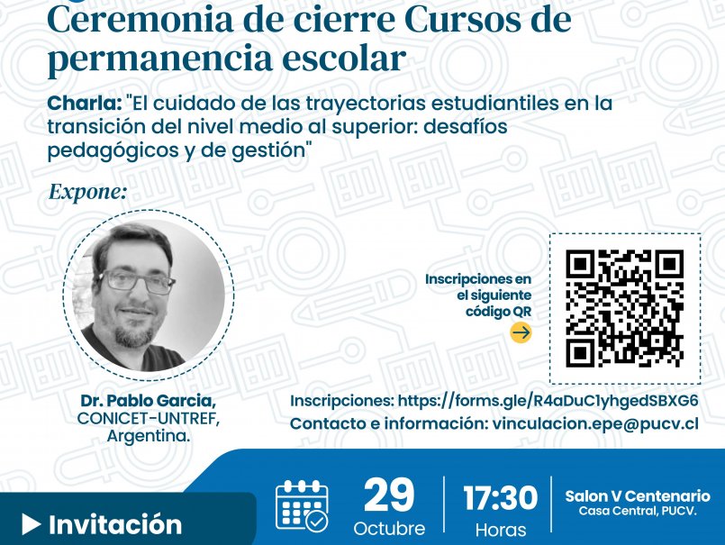 La Escuela de Pedagogía de la PUCV y la Secretaría Regional Ministerial de Educación de la Región de Valparaíso, realizarán la ceremonia de certificación de los Cursos de Permanencia Escolar 2024.