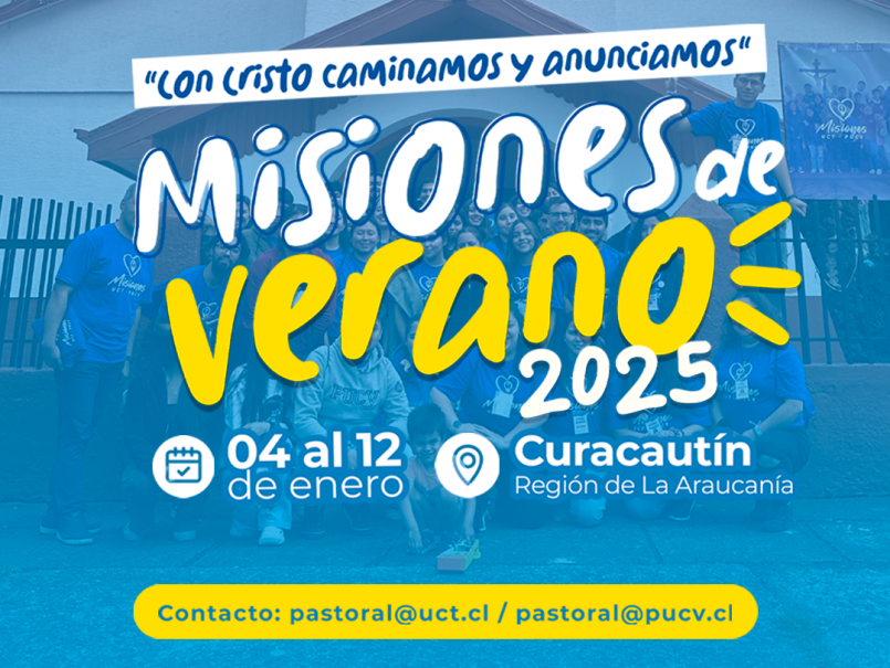 La Pontificia Universidad Católica de Valparaíso y la Universidad Católica de Temuco invitan a los y las estudiantes a participar en las Misiones de Verano 2025, que se llevarán a cabo en la localidad de Curacautín entre los días 4 y 12 de enero del 2025.