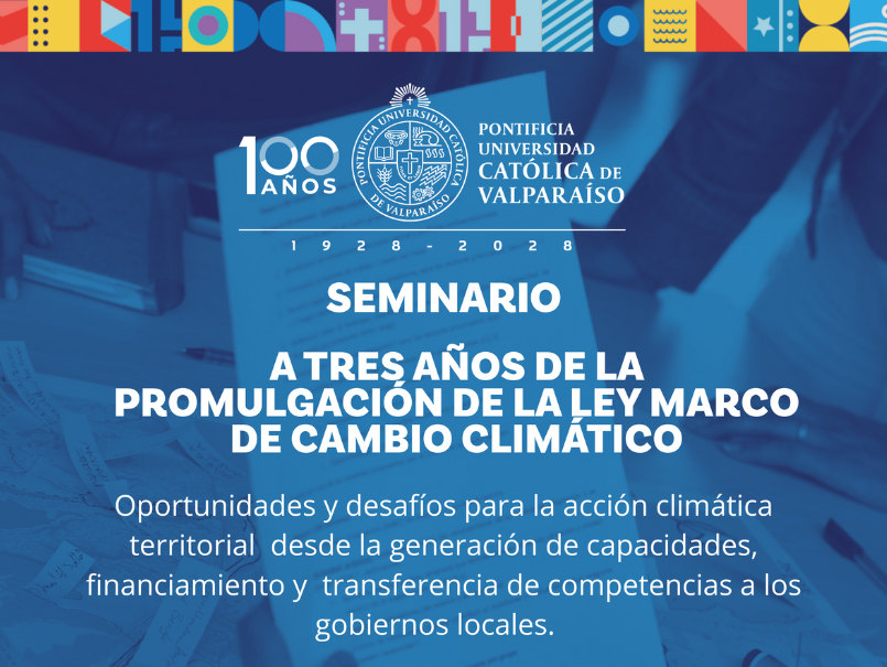 El día viernes 30 de mayo, entre las 9 y 13:30 horas, se llevará a cabo el seminario "A tres años de la promulgación de la Ley Marco de Cambio Climático", evento que se realizará en el Auditorio del Aulario de nuestra Facultad de Ingeniería, ubicado en Av. Brasil 2162, Valparaíso.