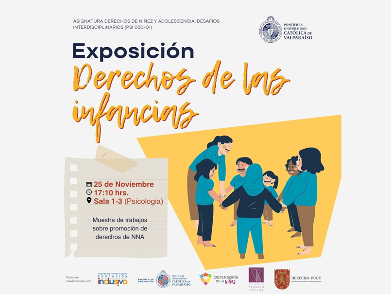 El lunes 25 de noviembre, a las 17.15 horas, se realizará en la sala 1-3 de la Escuela de Psicología en el Campus Sausalito (Avenida El Bosque 1290, Viña del Mar), la Exposición Derechos de las Infancias, actividad enmarcada en la asignatura Derechos de Niñez y Adolescencia: Desafíos Interdisciplinarios.