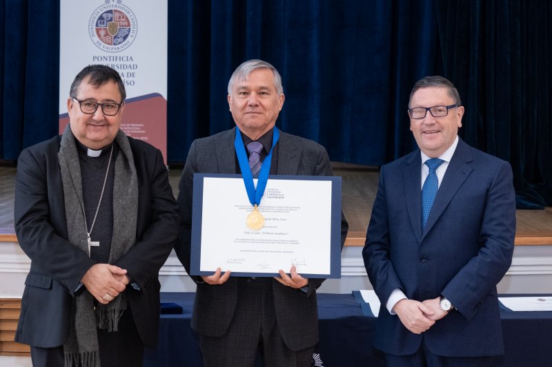 Un total de siete profesores y profesoras de la Universidad recibieron la condecoración Fides et Labor al Mérito Académico, tradicional ceremonia que se realizó en Casa Central y que fue encabezada por el Obispo de Valparaíso y Gran Canciller de la PUCV, Monseñor Jorge Patricio Vega, y el rector Nelson Vásquez.