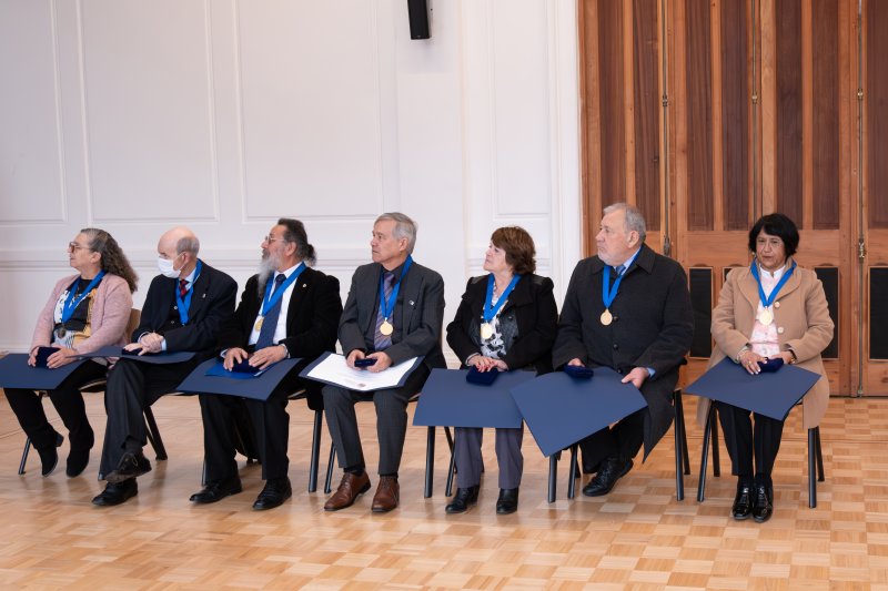 En la oportunidad, fueron homenajeados Mariel Campalans (Escuela de Ciencias del Mar), Claudio Elórtegui Raffo (Escuela de Negocios y Economía), Héctor García (Instituto de Filosofía), Jaime Mena (Instituto de Matemáticas), Alicia Olguín (Instituto de Física), Luis Rodríguez (Escuela de Derecho) y Rosa Vera (Instituto de Química).