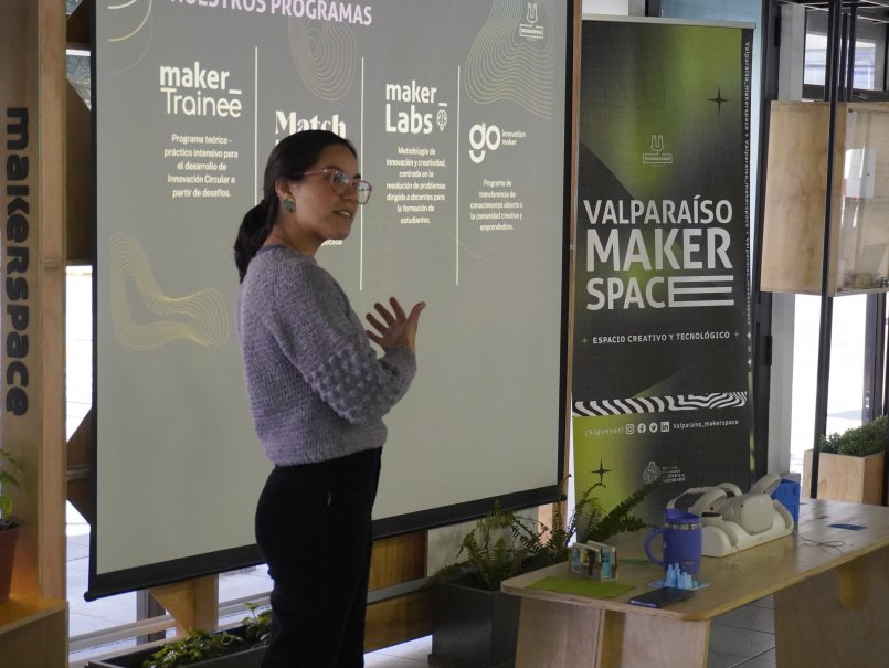 “Lo que buscamos es un aprendizaje basado en el servicio, donde los estudiantes puedan ser agentes de cambio, conscientes con su entorno, con el medioambiente, con las comunidades y que, a través de la innovación, podamos dar diversas oportunidades, democratizar el conocimiento, realizar un trabajo interdisciplinario para impactar en la sociedad”, manifestó la coordinadora general del Valparaíso Makerspace, Dayán Echeverría.