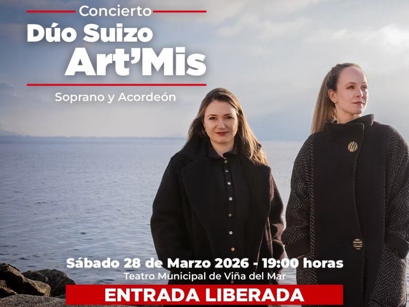 Este sábado 28 de marzo a las 19 horas, en el Teatro Municipal de Viña del Mar, se presentará el Dúo Suizo Art’Mis con un destacado repertorio para soprano y acordeón.