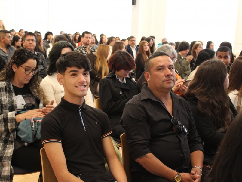 La jornada también fue un espacio para escuchar las voces de quienes comienzan este camino junto a sus familias. Catalina Villalobos, estudiante del eje de Ciencias Sociales y Humanidades, expresó su orgullo por haber sido seleccionada.