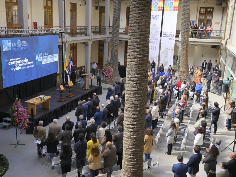 Ante la asistencia de más de 200 personas que se dieron cita en el patio de Casa Central, la Pontificia Universidad Católica de Valparaíso conmemoró los primeros cien años desde la instalación de la Primera Piedra del emblemático edificio que hoy es Monumento Histórico Nacional. Aquel momento marcó el inicio de la institución que hoy es la más grande de la región y una de las cinco mejores universidades del país.