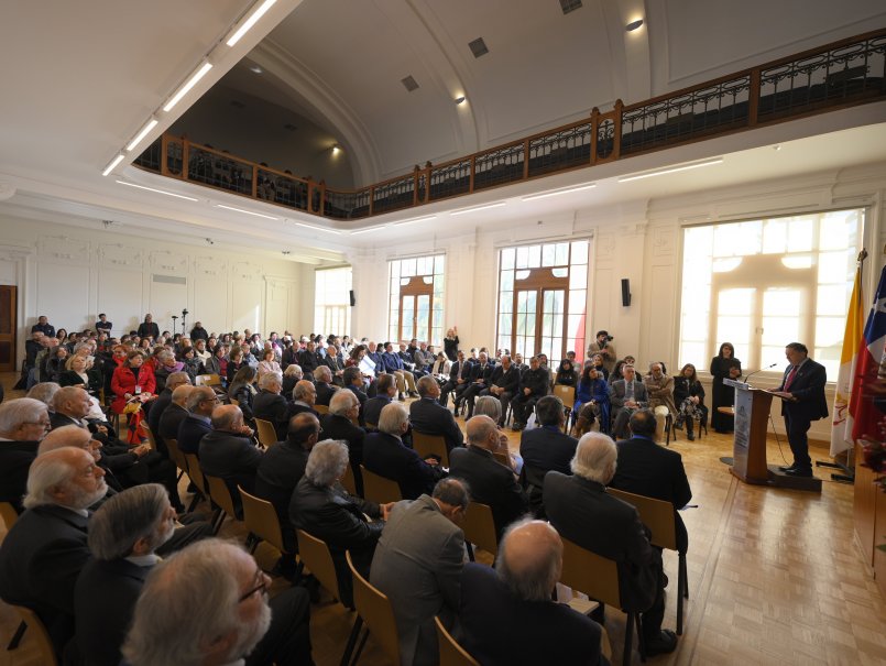 En el Salón de Honor se efectuó la tradicional celebración del Día del Sagrado Corazón, ocasión en la que se entregó la condecoración Fides et Labor a un grupo de ocho académicos y académicas destacados por su extensa trayectoria en la Universidad. Además, se dio la Medalla del Centenario a 20 profesores eméritos y a cuatro exrectores.