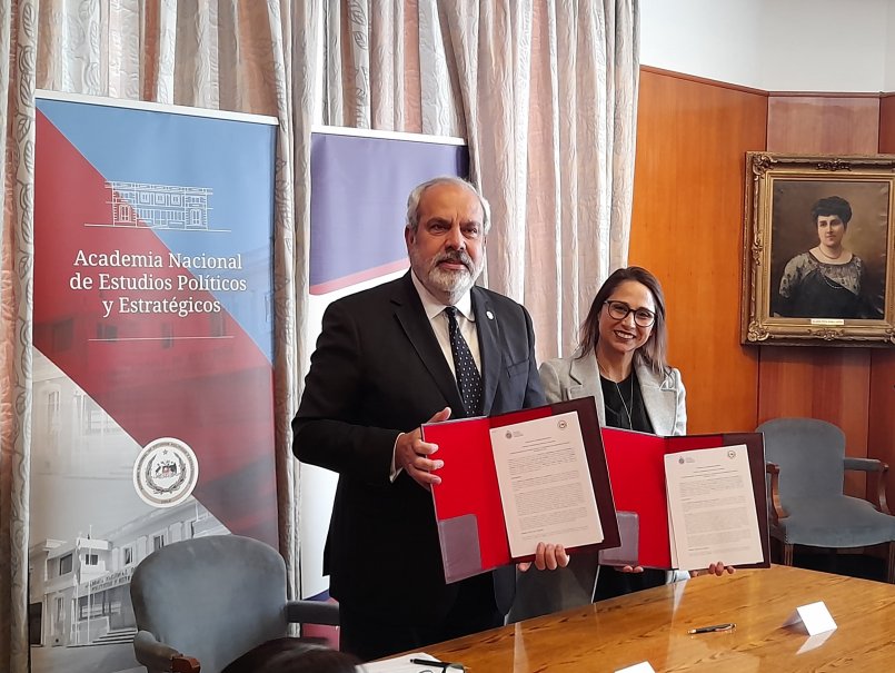 El convenio de colaboración general fue firmado por la vicerrectora (s) de Vinculación con el Medio, Jacqueline Páez, y el director de la ANEPE, Ronald McIntyre, en la Sala del Consejo Superior.