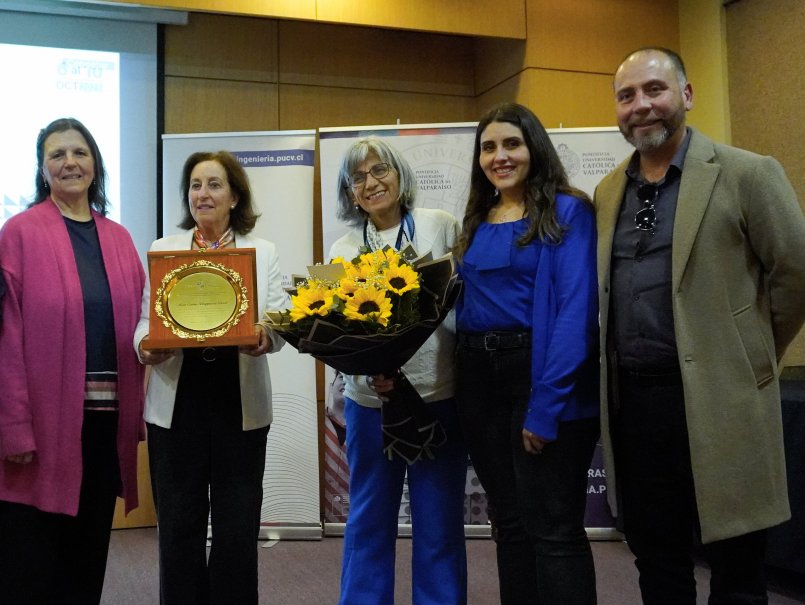 En la instancia, se entregó una distinción a la académica destacada del año, que recayó en María Cristina Schiappacasse, quien con 44 años de trayectoria en la Escuela de Ingeniería Bioquímica fue la primera docente mujer de la Unidad Académica.