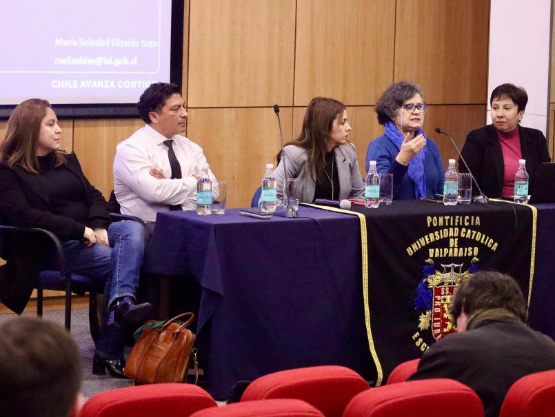 Por otro lado, el segundo panel trató acerca de "Problemas prácticos en la implementación de la Ley Karin desde la perspectiva de la prevención, investigación y estrategia judicial", donde se presentaron María Soledad Elizalde, especialista en Riesgos Psicosociales en el Trabajo del Instituto de Seguridad Laboral; Romina Mardel, abogada y vicepresidenta de la Asociación Gremial de Abogados Laboralistas; Esteban Aravena, abogado del Estudio Jurídico Osorio y Cía.; y Verónica Munilla, profesora de Derecho del Trabajo PUCV.