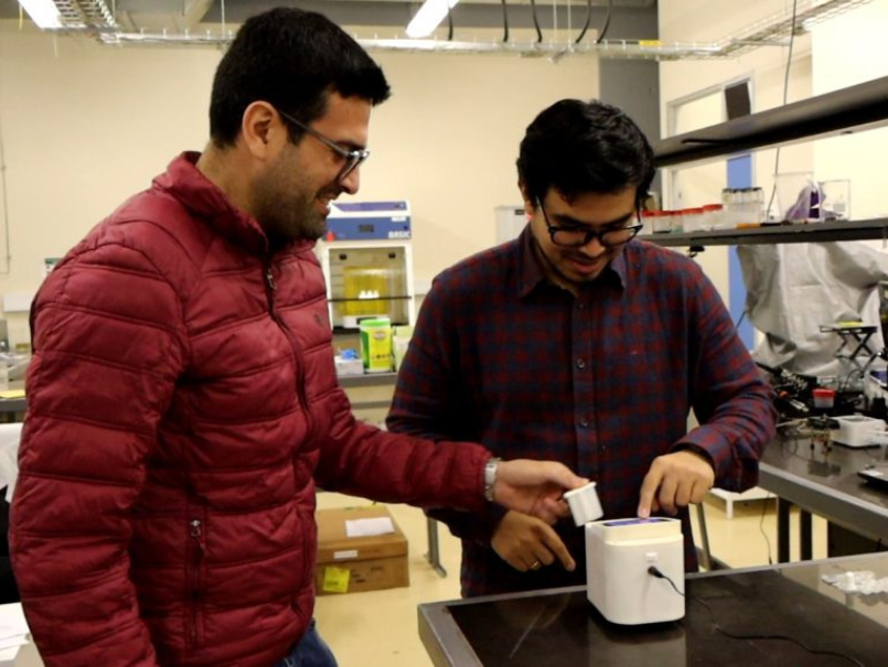 Por otro lado se encuentra MagVisc, un viscosímetro portátil que requiere un bajo volumen de muestra, lo que permite acotar los tiempos de medición. Esta tecnología fue desarrollada por la spin off “Phynovo”, empresa fundada por Pablo Silva y Elías Santacruz, estudiantes del Doctorado en Ciencias Físicas PUCV, junto a Francisca Rojas, Doctora en Ciencias mención Química PUCV.