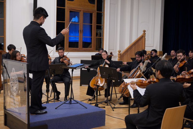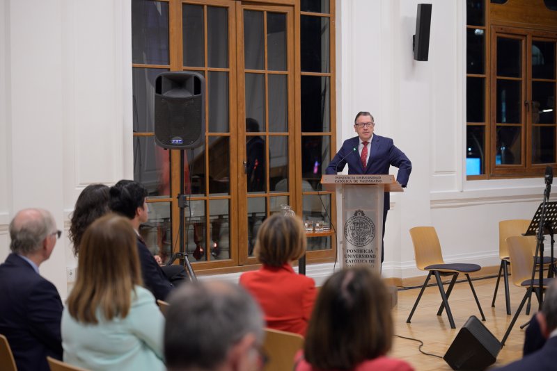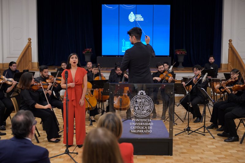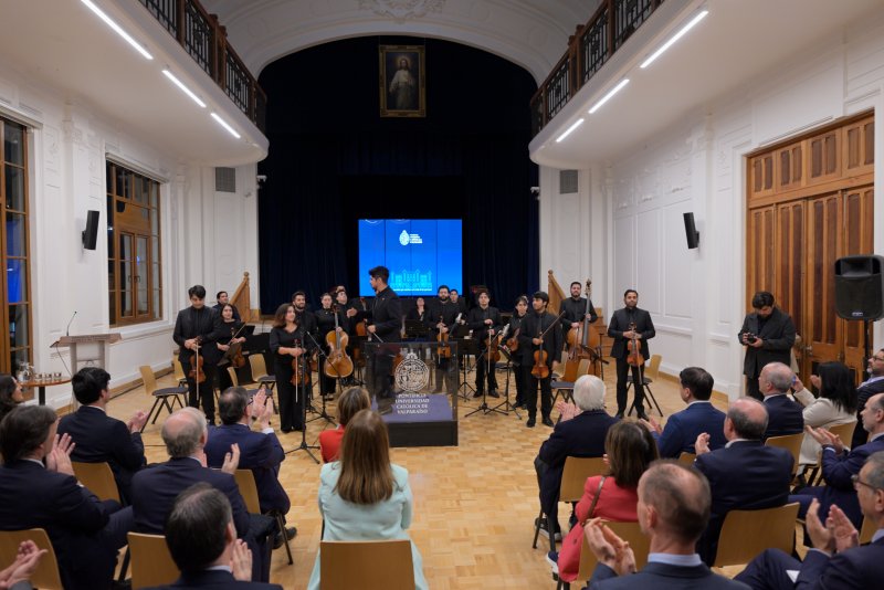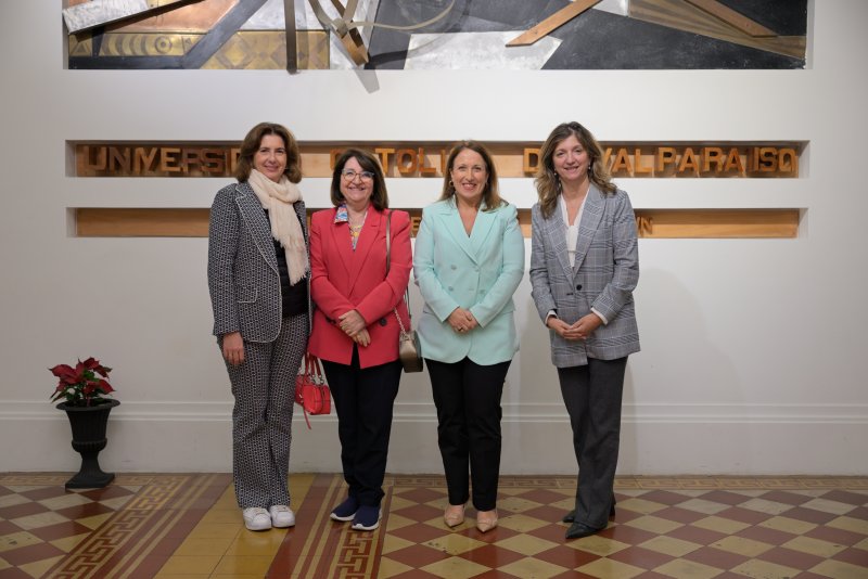 El martes 22 de abril se efectuó en la Casa Central PUCV el Primer Encuentro de Rectores y Rectoras Chile-España, donde las autoridades de las universidades participaron de una foto oficial para asistir después a un concierto de la Orquesta Clásica PUCV en el Salón de Honor y una cena en el Salón Centenario.