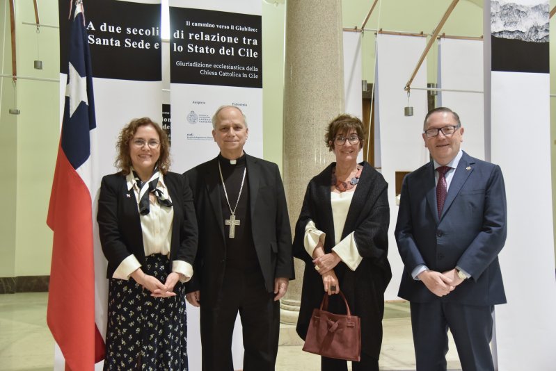 Con la presencia del Prefecto del Dicasterio para los Obispos, cardenal Robert Prevost; los embajadores de Chile en El Vaticano y en Italia, Patricia Araya y Ennio Vivaldi, respectivamente, además del rector Nelson Vásquez, autoridades, estudiantes y profesores de la PUCV, se llevó a cabo en la Pontificia Universidad Gregoriana en Roma el lanzamiento de la exhibición “Camino hacia el Jubileo: dos siglos de relaciones entre la Santa Sede y Chile”, la cual fue creada por alumnos y profesores de la Escuela de Arquitectura y de Diseño y del Instituto de Historia de nuestra casa de estudios.
