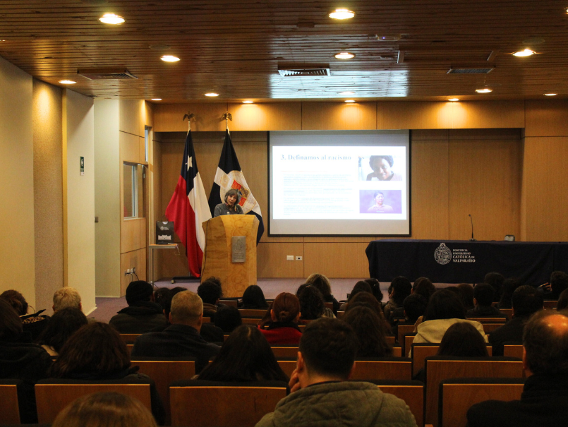 El espacio tuvo como objetivo generar un espacio de diálogo respecto al racismo y los desafíos para el trabajo con personas migrantes en Chile, el que contó con la participación de María Emilia Tijoux, académica de la Escuela de Sociología de la Universidad de Chile, quien dictó la charla magistral: “¿De qué hablamos cuando decimos racismo?”, donde abordó la construcción de la identidad social, la migración como un fenómeno global y la interculturalidad en áreas como la salud, educación, entre otros.
