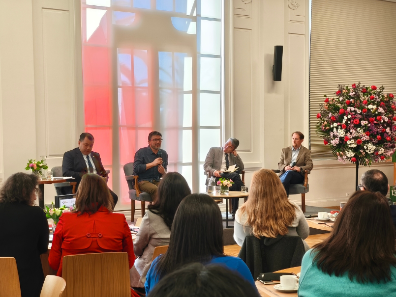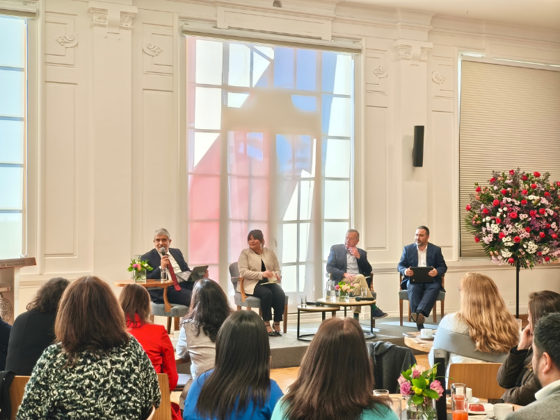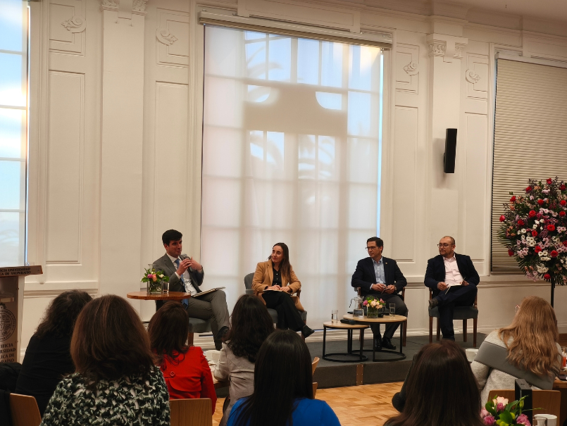La actividad se articuló en torno a tres paneles temáticos. El primero de ellos fue “Educación Superior para el Desarrollo Sustentable”, moderado por el rector de la Universidad Católica de la Santísima Concepción, Cristhian Mellado, y que reunió a los alumni Pablo Etcharren (UCT), Marcelo Mena (PUCV) y Felipe Marín (UCM), quienes, desde su vínculo con la investigación y gestión ambiental, compartieron su visión sobre el rol formativo de las universidades frente a la crisis climática.