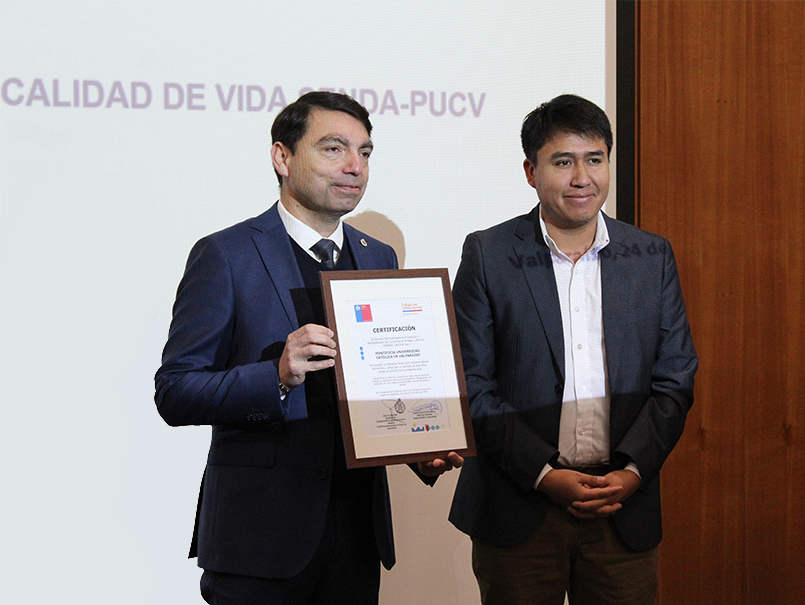 Tras dos años de trabajo colaborativo, la Pontificia Universidad Católica de Valparaíso recibió la certificación final como Espacio Laboral Preventivo, distinción otorgada por el Servicio Nacional para la Prevención y Rehabilitación del Consumo de Drogas y Alcohol, en el marco del programa “Trabajar con Calidad de Vida”.