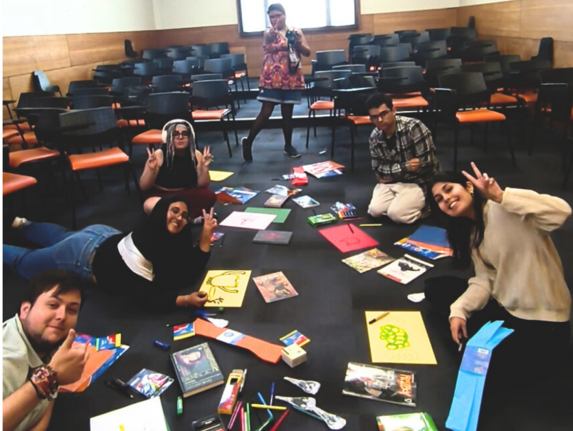 Asimismo, la alumna Gabriela Santis realizó un taller de creación de personajes a través del fanzine, ocasión en la que utilizó como ejes la empatía, la imaginación y el reconocimiento de la singularidad, promoviendo la reflexión y la representación simbólica de la discapacidad a través de personajes creativos.