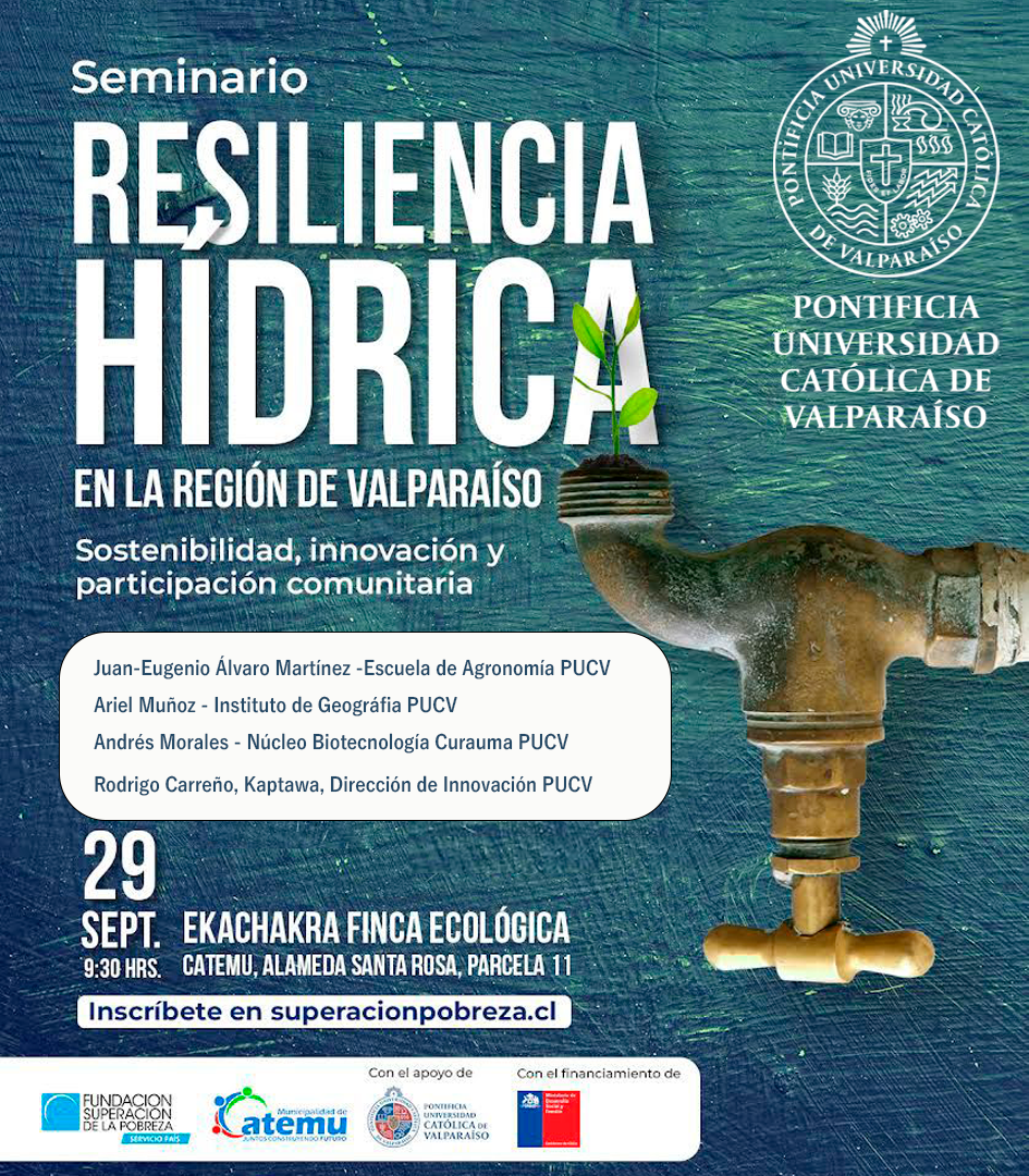 El próximo jueves 29 de septiembre se realizará el seminario: “Resiliencia Hídrica: Sostenibilidad, innovación y participación comunitaria”, cuya instancia se piensa como un espacio para compartir experiencias de comunidades que han conseguido enfrentar la crisis hídrica en la región de Valparaíso, a través de participación comunitaria llevada a la sostenibilidad y la innovación.