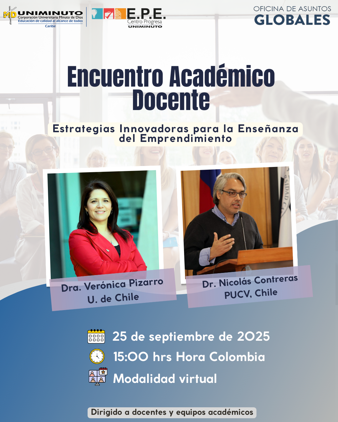 El Dr. Nicolás Contreras Barraza, académico de la Escuela de Comercio de la Pontificia Universidad Católica de Valparaíso (PUCV), participó como conferencista destacado en una jornada académica internacional organizada por la Oficina de Asuntos Globales y la Vicerrectoría Académica de UNIMINUTO – Rectoría Caribe (Colombia).