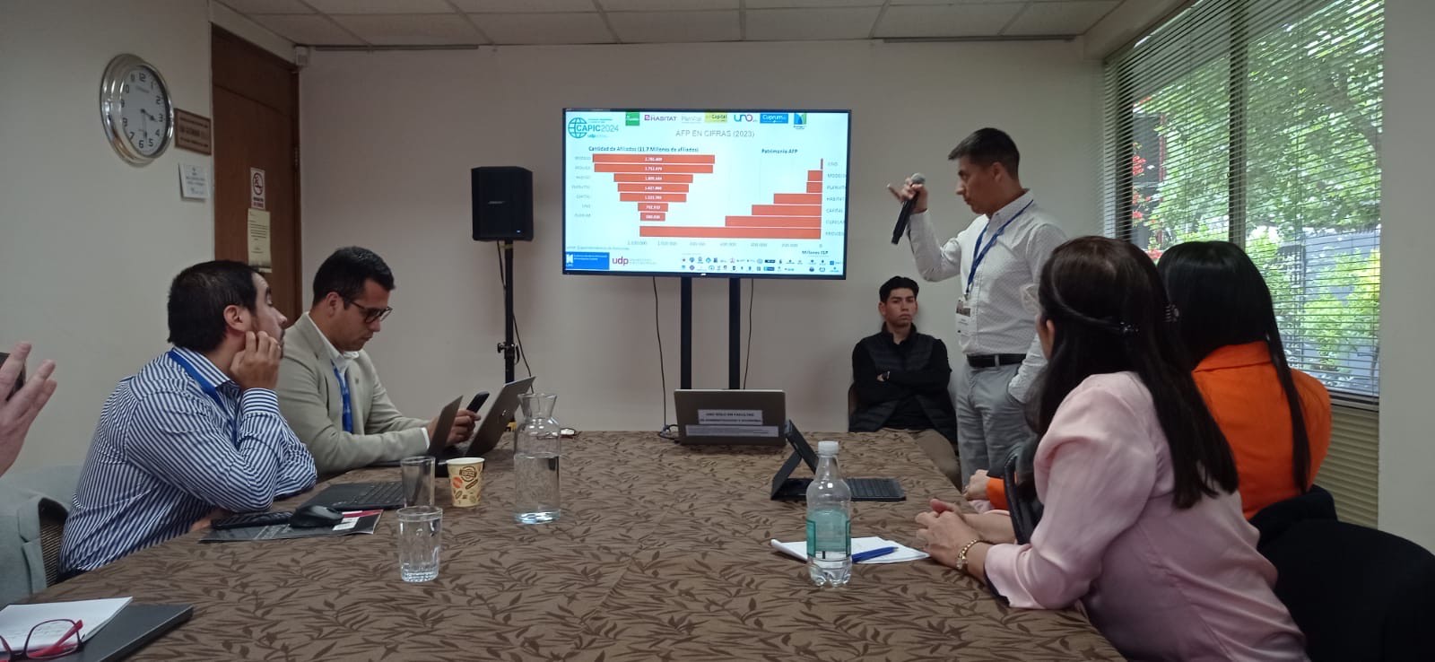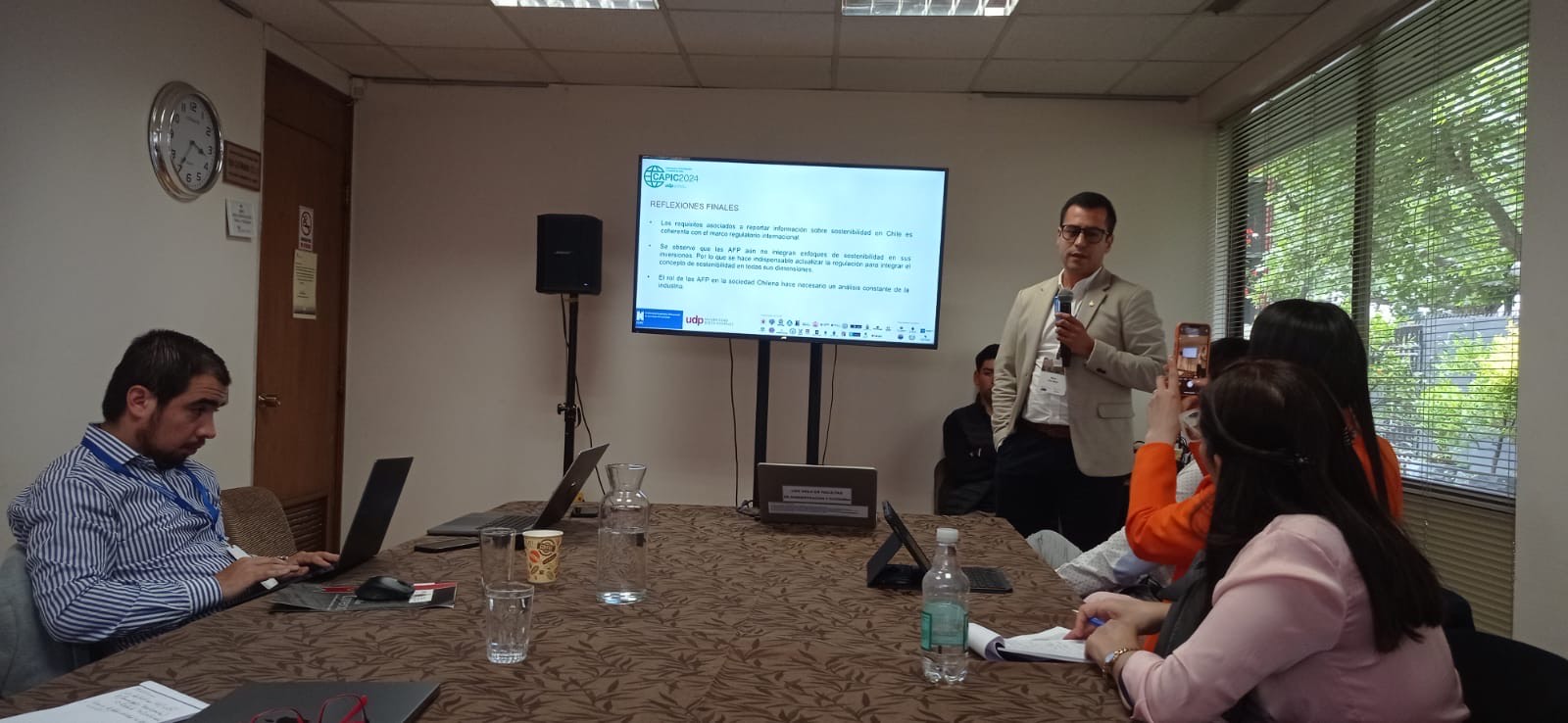 Asimismo, hubo espacio para presentar ensayos. En esta línea, las profesoras Digna Azúa y Verónica Pizarro presentaron el trabajo titulado "Aprendizaje-servicio: evidencias en el desarrollo de competencias genéricas en la formación de contadores en Chile". Finalmente, en una colaboración entre los académicos/as Katherine Restrepo, Javier Aranda, Nicolás Urquieta y Mario Pino, se abordó el tema "Transparencia, divulgación y coherencia: sostenibilidad e inversiones de las AFP en Chile".