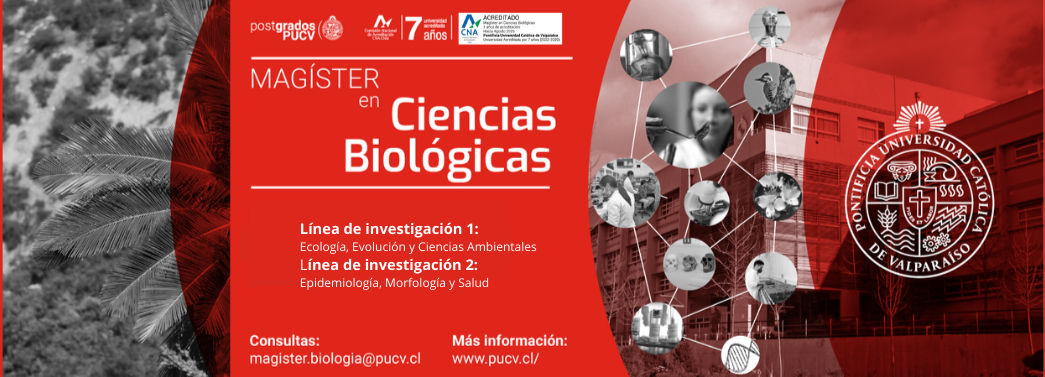 El Magíster en Ciencias Biológicas es un Programa académico perteneciente a la Facultad de Ciencias, de la Pontificia Universidad Católica de Valparaíso, acreditado por 2 años, hasta AGOSTO de 2026. Comisión Nacional de Acreditación CNA - Chile
