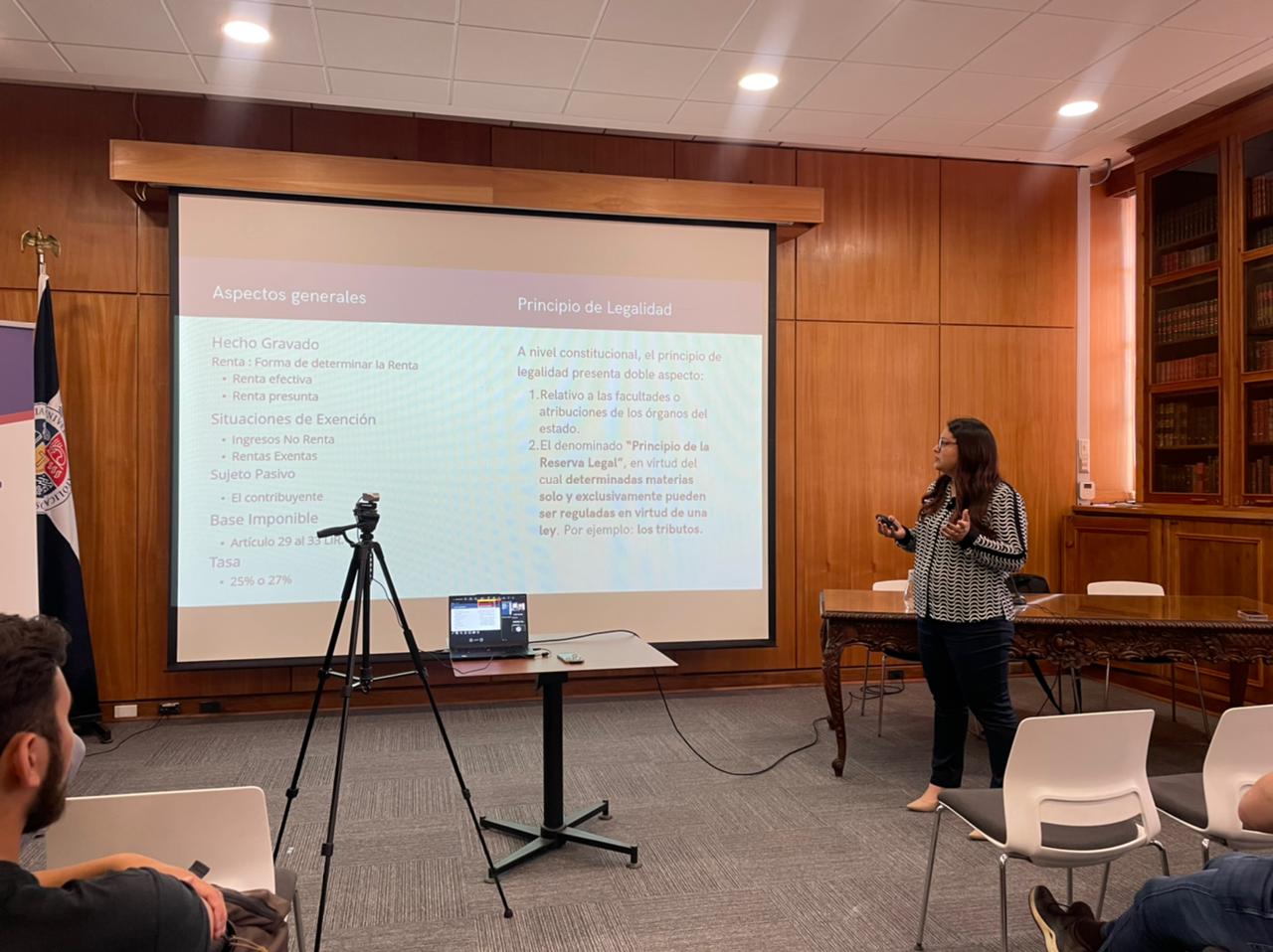 En la sala Obispo Emilio Tagle en Casa Central, ex alumna y reconocida Tax Manager de Mazars, expuso sobre los puntos principales del Impuesto a la Renta durante la declaración del año en curso.