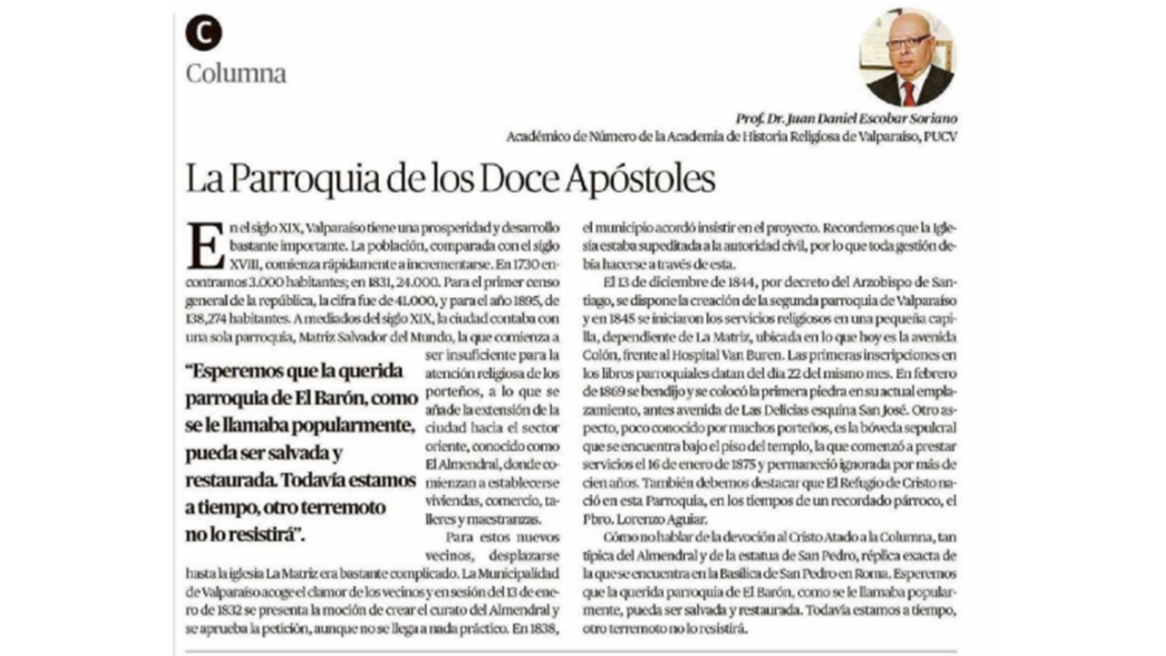 Columna Prof. Juan Daniel Escobar: La Parroquia de los Doce Apóstoles