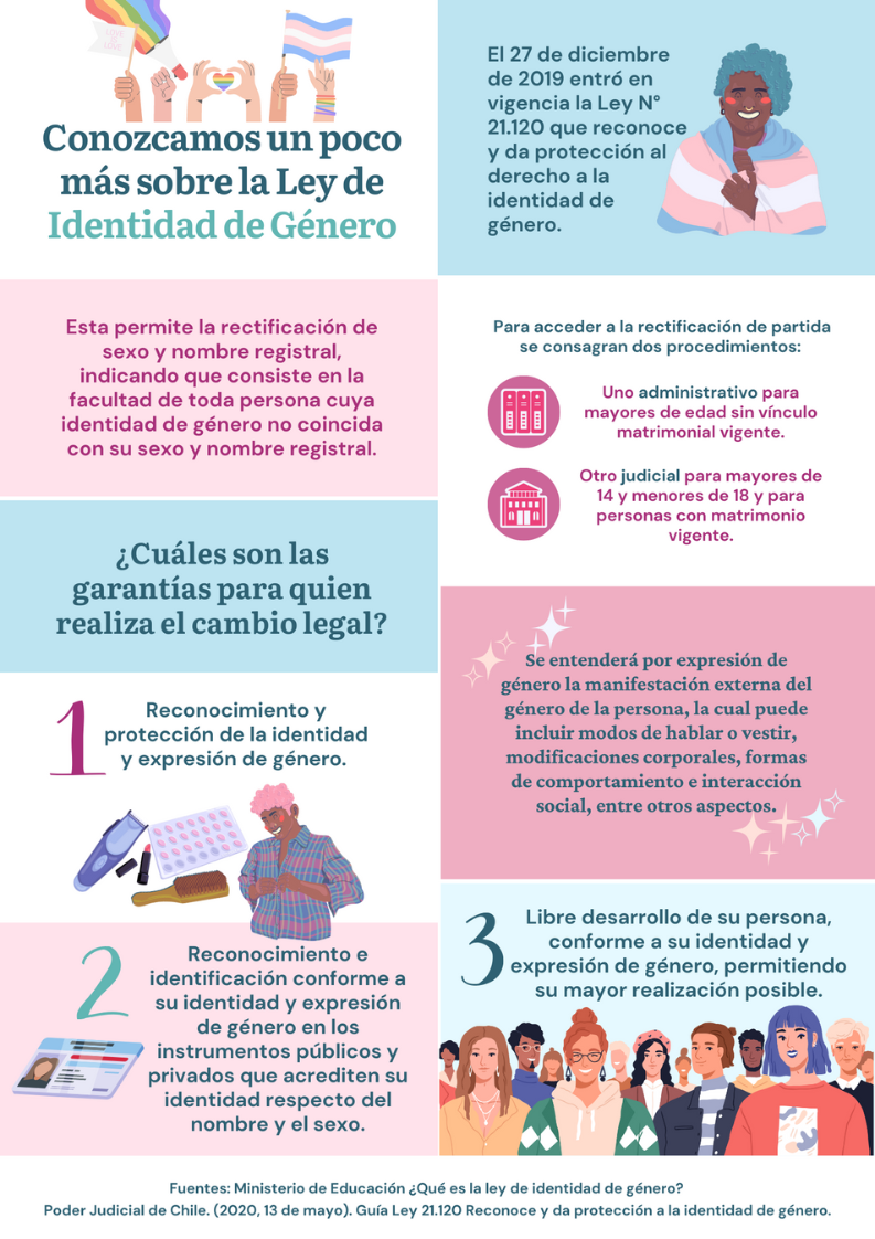 El 27 de diciembre de 2019 entró en vigencia la Ley N° 21.120 que reconoce y da protección al derecho de identidad de género. ¿En qué consiste? Esta norma otorga la facultad a toda persona cuya identidad de género no coincida con su sexo y nombre registral, de solicitar la rectificación de éstos.