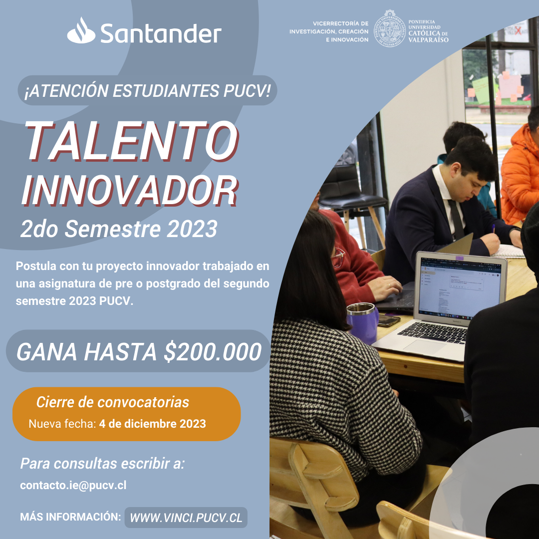 Podrán postular todos los alumnos de pre y postgrado de la PUCV, que se encuentren  desarrollando un proyecto innovador en el marco de una asignatura  implementada en el segundo semestre académico del año 2023.