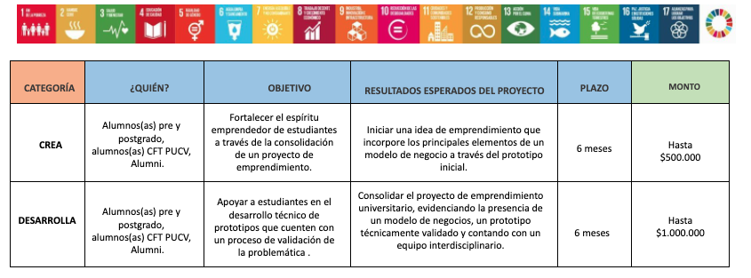 Podrán postular todos los alumnos de pre y postgrado PUCV, Alumni PUCV (entiéndase titulado y/o egresado) y alumnos CFT PUCV.