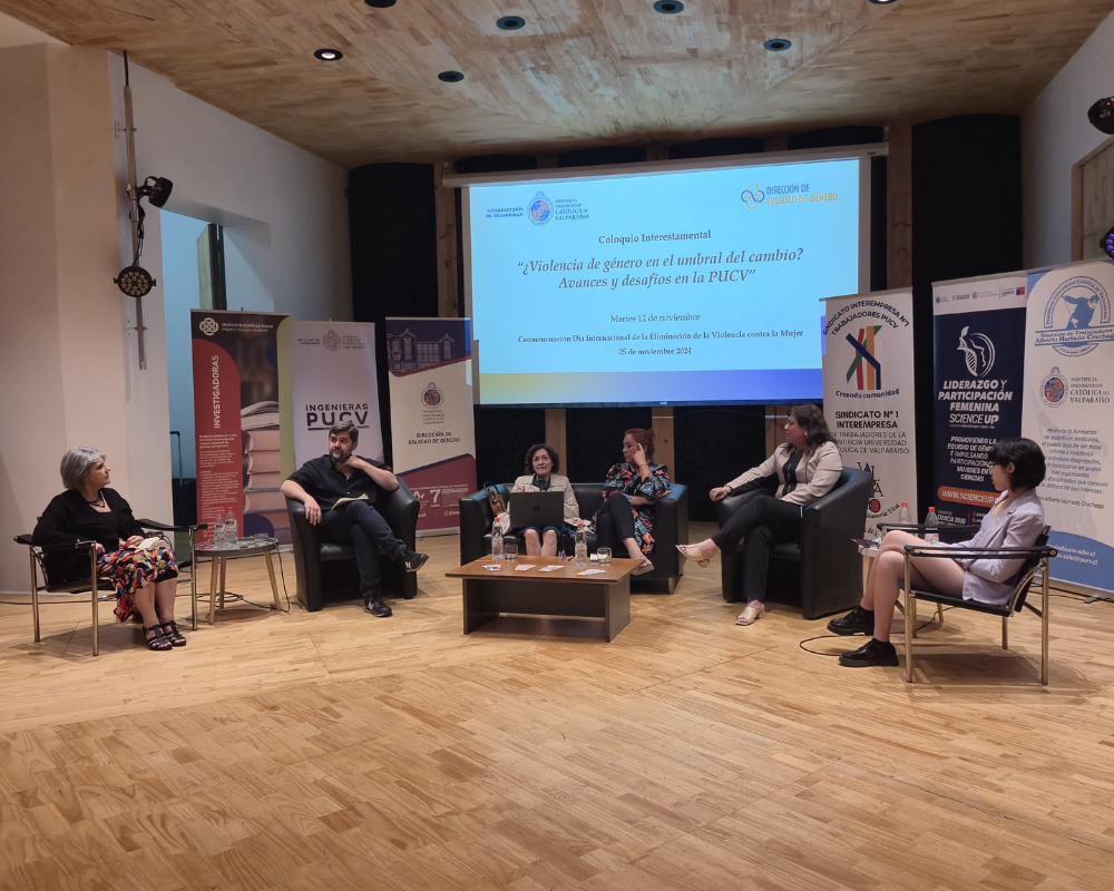 En el marco del Día Internacional de la Eliminación de la Violencia contra la Mujer, nuestra universidad realizó el coloquio "Violencia de género en el umbral del cambio: Avances y desafíos en la PUCV", el cual abordó diversas perspectivas sobre la violencia de género, y se destacó la importancia de transformar las estructuras culturales que perpetúan la desigualdad y el abuso.