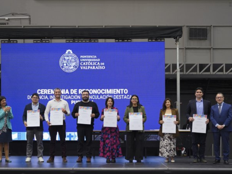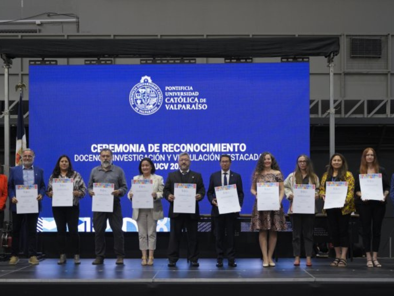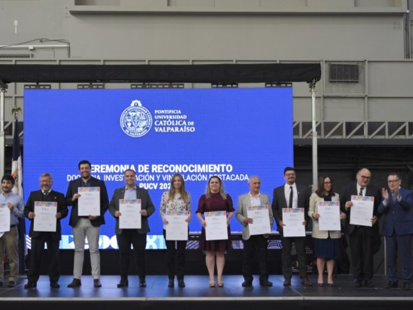 Nuestra casa de estudios efectuó su tradicional ceremonia de reconocimiento a la Docencia, Investigación y Vinculación Destacada 2024, instancia en la que se valoró el aporte que diariamente efectúa su cuerpo académico en diversos ámbitos del conocimiento, lo que se refleja en una formación de excelencia y que posiciona a la PUCV como una de las cinco mejores instituciones de educación superior del país.