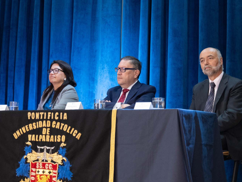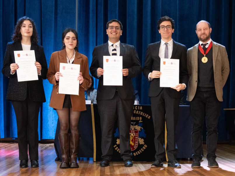 El acto fue presidido por el rector de la PUCV, Nelson Vásquez Lara, junto a la decana de la Facultad de Derecho, María Graciela Brantt Zumarán, y el director de la Escuela de Derecho, Eduardo Aldunate Lizana, y contó con la presencia de autoridades académicas, estudiantes, docentes, funcionarios y familiares de los premiados.