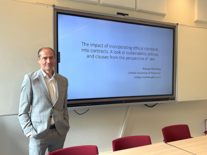 El profesor Momberg se encuentra realizando una estadía de investigación en la Facultad de Derecho de la Universidad de Maastricht, en el contexto de su proyecto de investigación Fondecyt Regular "El impacto de la incorporación de estándares éticos al contrato. Una mirada a las políticas y cláusulas de sustentabilidad desde el derecho de contratos".