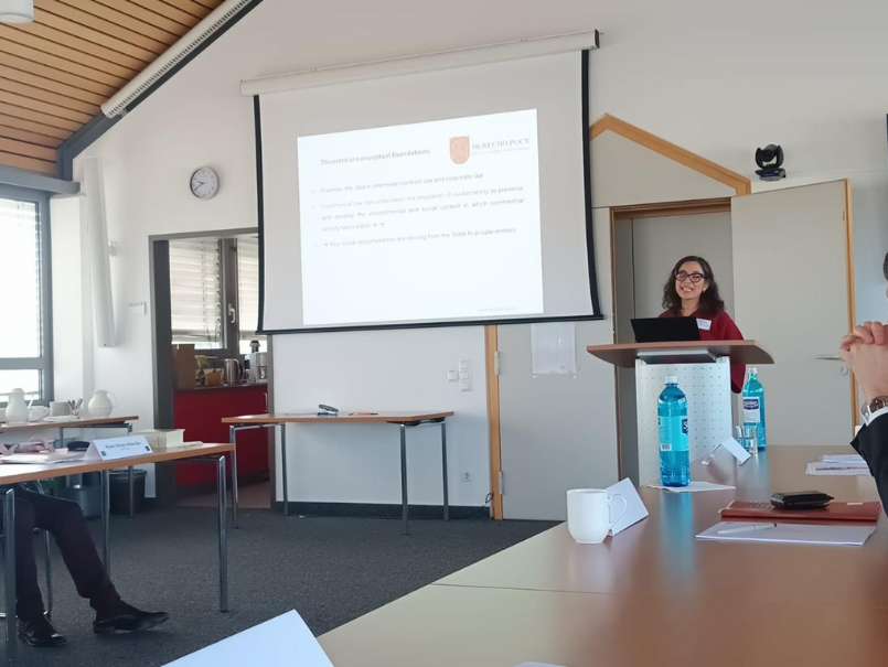Antes la presentación en Alemania, la profesora Carvajal desarrolló un breve período de investigación en Nottingham Trent University, donde es Senior Visiting Fellow. El 17 de junio de 2025, presentó sus ideas sobre la interacción entre el Derecho contractual y el Derecho corporativo en aras de la sostenibilidad ante miembros del Centre for Law, Emerging Technologies and Business (Nottingham Law School), cuya directora es la profesora Rebecca Parry. En esa ocasión, la profesora recibió contribuciones de sus colegas para el desarrollo de su trabajo y posterior presentación en el referido Simposio Chileno-Alemán.