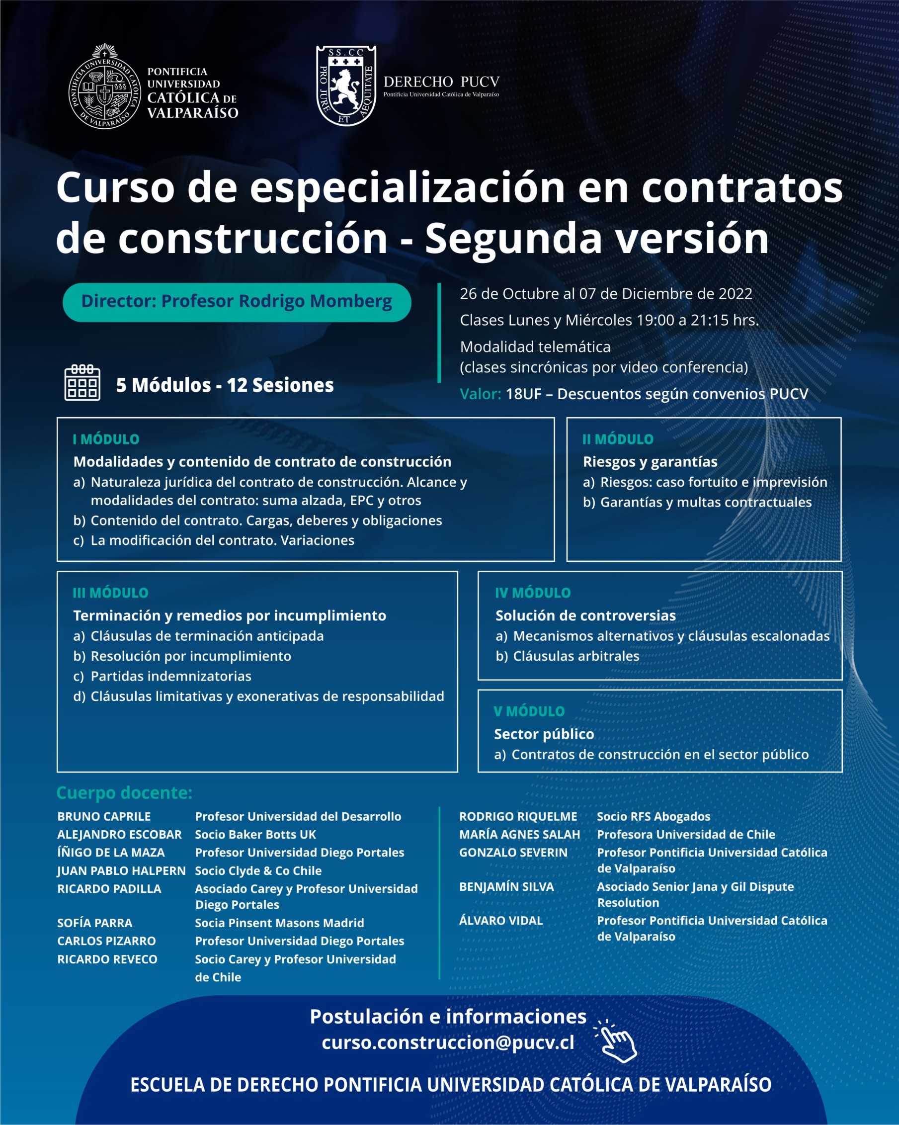 Contacto y postulaciones: curso.construccion@pucv.cl