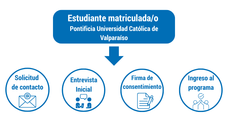 El programa PUCV Inclusiva está dirigido a estudiantes de la Pontificia Universidad Católica de Valparaíso. Quienes quieran ser parte se deben contactar vía correo electrónico al mail pucvinclusiva@pucv.cl . El equipo profesional contactará para entrevista inicial, luego deben firmar consentimiento de ingreso al programa. Una vez firmado, son parte del programa.