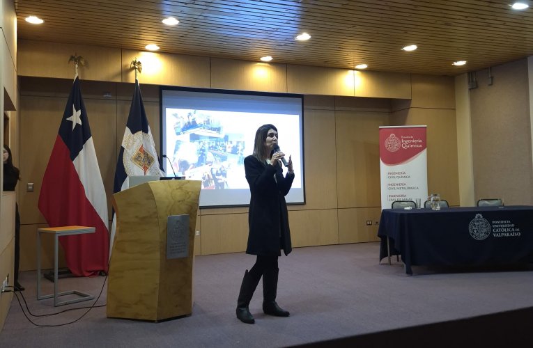 En el marco del Día de la Mujer Minera, el Centro de Estudiantes de Ingeniería Civil de Minas organizó una charla en la Facultad de Ingeniería, que contó con la participación de Maureen Griffiths, alumni de la Escuela de Ingeniería Química de la PUCV e integrante de Women in Mining Chile (WIM).