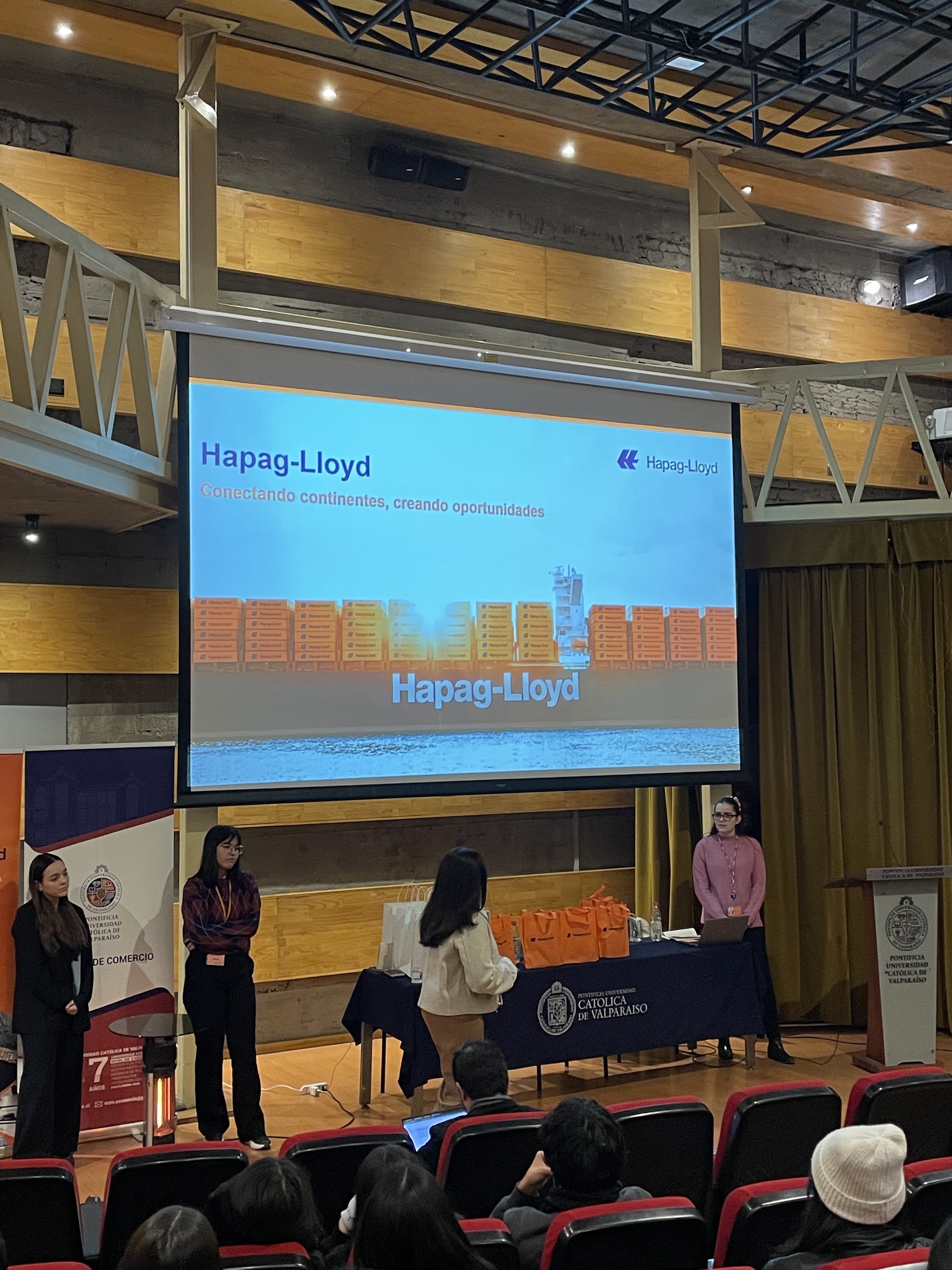 En el marco de las actividades de vinculación con el medio y exploración profesional, la Escuela de Comercio de la Pontificia Universidad Católica de Valparaíso recibió a representantes de la reconocida empresa naviera Hapag-Lloyd, quienes ofrecieron una charla dirigida a los y las estudiantes, con foco en las habilidades más valoradas en el mercado laboral actual.