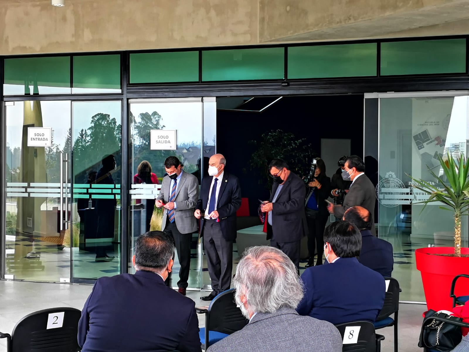 Claudio Elórtegui, Rector de la Universidad, Guillermo Martínez González, Decano de la Facultad de Cs. del Mar y Geografía, y Dante Queirolo Palma, Director de la Escuela de Ciencias del Mar, así como el Obispo de Valparaíso y Gran Canciller de la Universidad, Mons. Jorge P. Vega Velasco svd, fueron los encargados de anfitrionar la ceremonia,