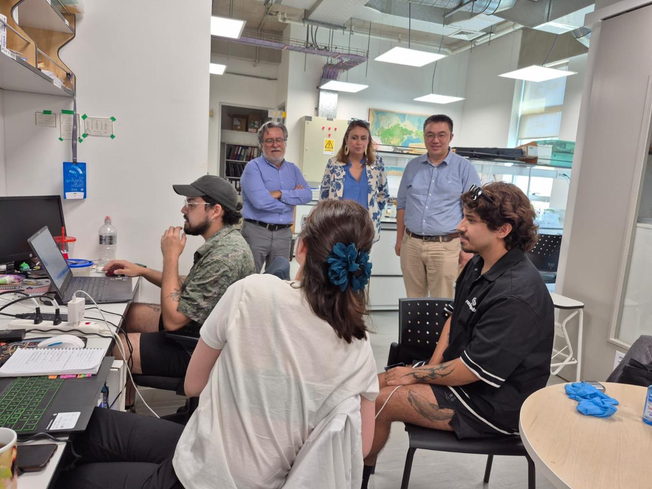 El académico fue recibido por el jefe de docencia  Exequiel González,  en representación de la dirección de la Escuela de Ciencias del Mar, y acompañado por Lorena Muñoz, profesional de la Dirección de Asuntos Internacionales de la PUCV. Durante su visita, recorrió las instalaciones de la unidad académica, incluido el CIAS y sostuvo un encuentro con ayudantes de investigación vinculados al proyecto DEOX.
