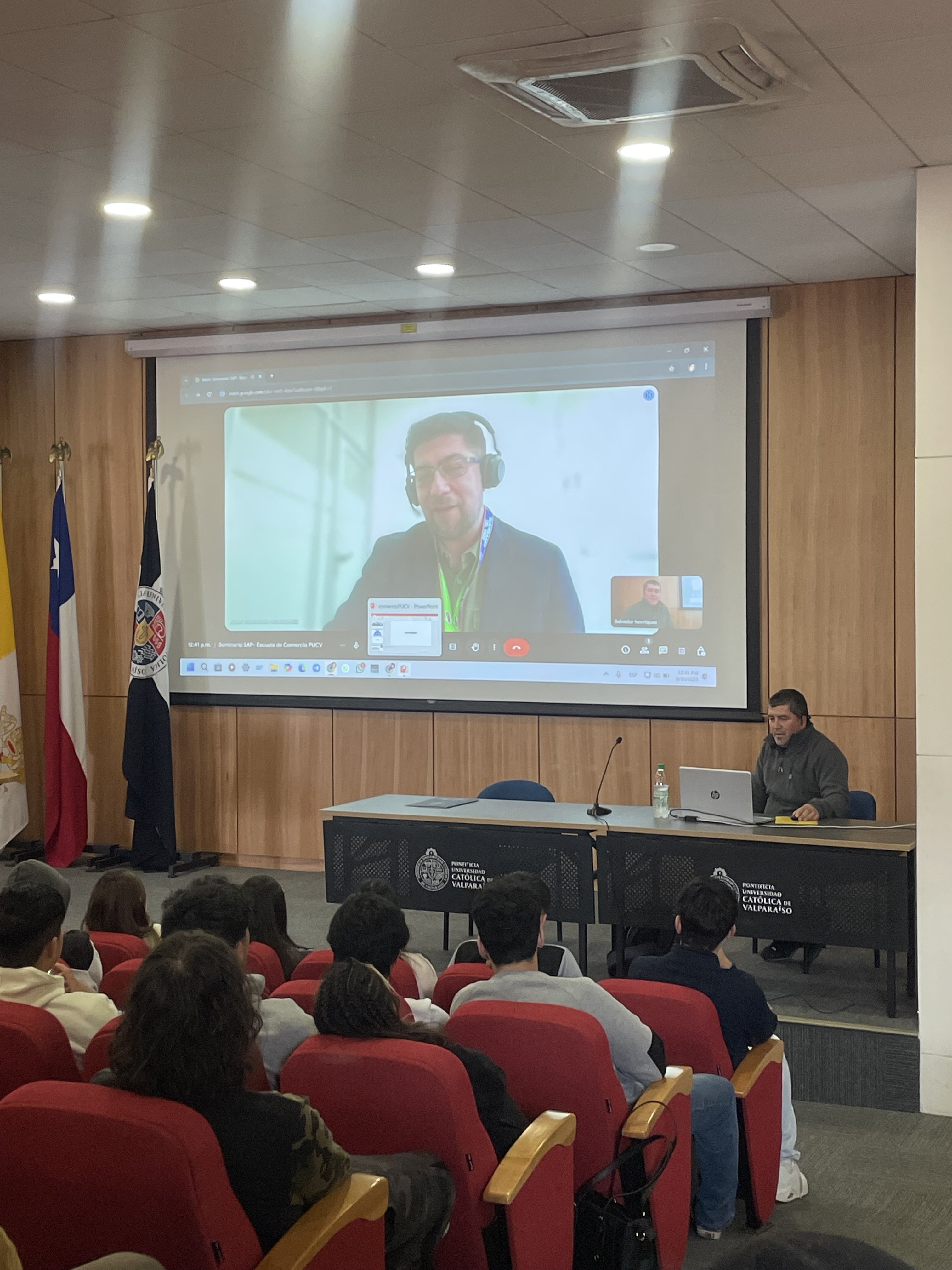 La Escuela de Comercio de la Pontificia Universidad Católica de Valparaíso realizó una charla sobre SAP ERP, a cargo de Salvador Henríquez, consultor SAP, dirigida a estudiantes de la carrera de Contador(a) Auditor(a).