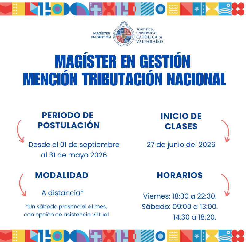 Usted está en: Portada | Escuela de Comercio PUCV Magíster en Gestión mención Tributación Nacional Descargas Brochure 2026 Twittear subir volver