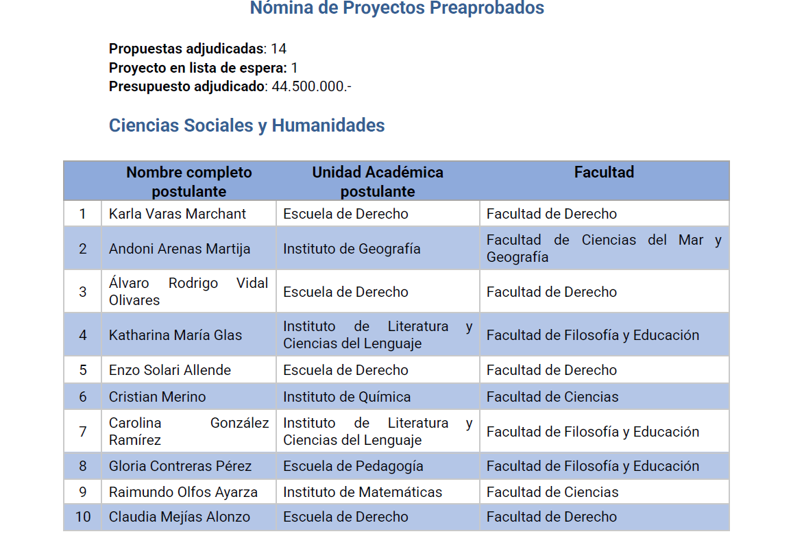 Usted está en: Portada | Vicerrectoría de Investigación, Creación e Innovación Fallo concurso DI Regular 2026 * Sujeto a aprobación Informe DI Iniciación 2025 **Proyecto en Lista de Espera Twittear subir volver